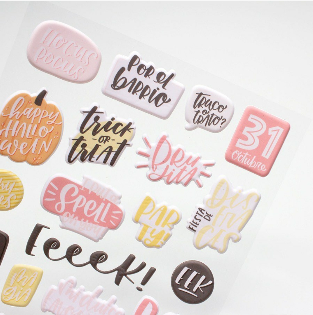 Autocolantes Puffy | Frases | Truco o Trato 5,99 € Desconto de %. IVA incluído. Partilhar Comprar Contactar Conjunto de 72 autocolantes puffy. Nota: A cor dos produtos poderá sofrer alterações alheias à N/ responsabilidade, devido à diferente calibragem de cada ecrã. Marca Mintopía Tags AutocolantesPuffyFrasesTrucooTratoHalloweenMintopia