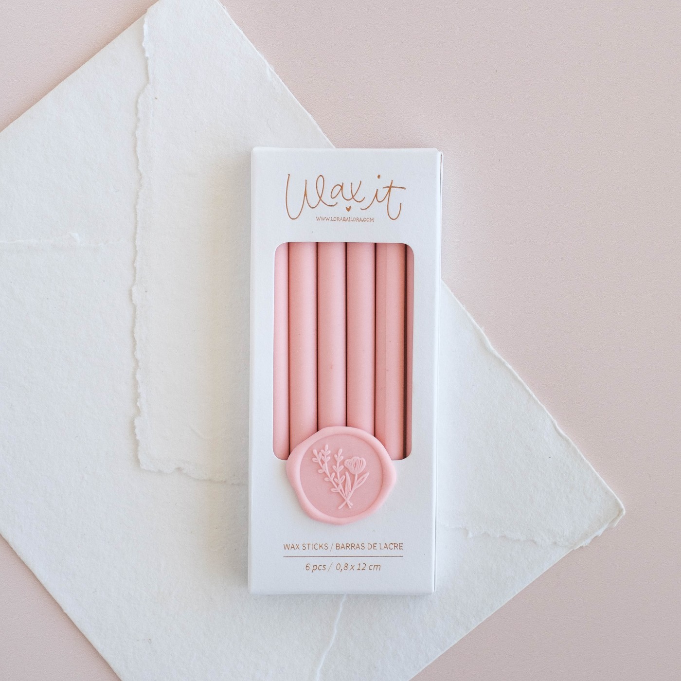 Conjunto de 6 Barras de cera, composta por uma gama de 40 cores com uma apresentação única. Embalagem em papel de algodão com estampagem rose gold e lacre de 2,5 cm como amostra da cor contida no conjunto.