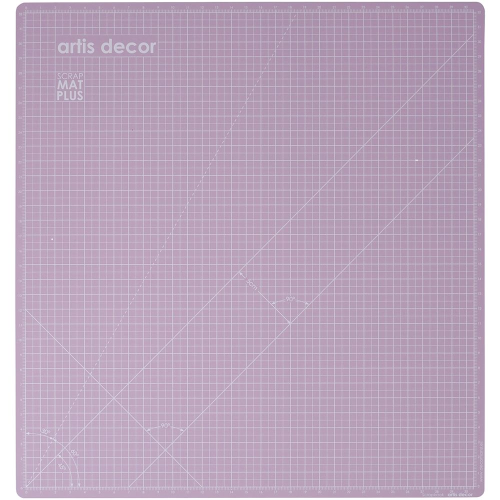 No lado verde menta é quadriculado em centímetros e inclui ângulos de 30, 60, 90 e 45º. Também possui linhas diagonais separadas por 5 cm.