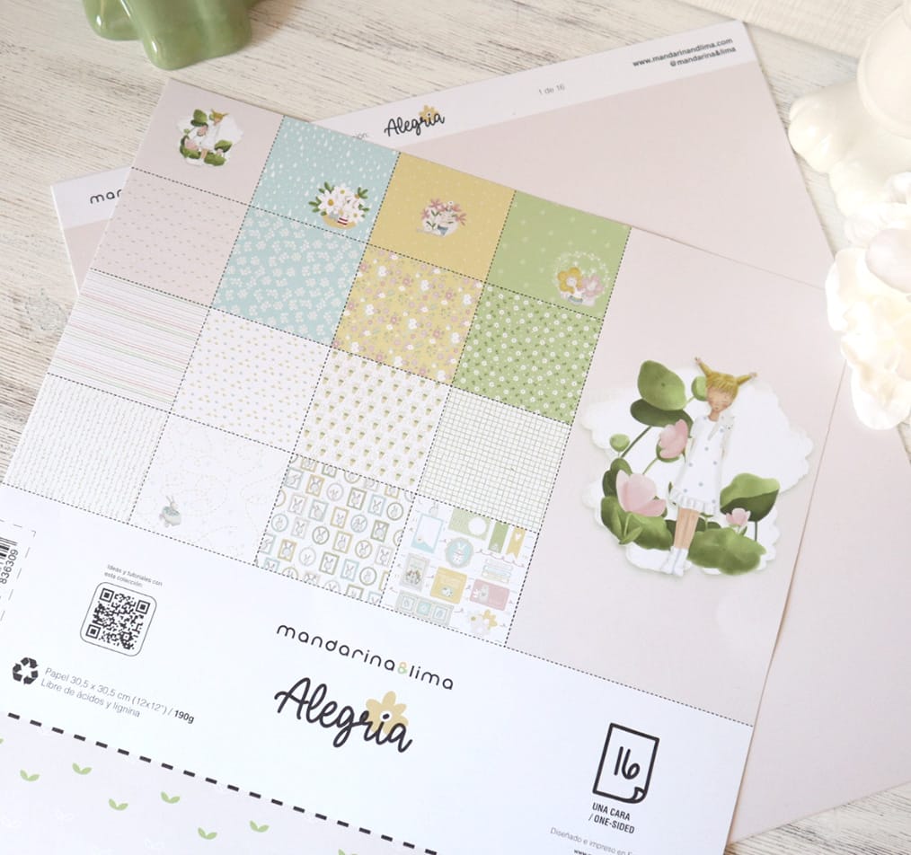 Bloco 16 Papéis | 12x12 | Alegría | Mandarina & Lima
