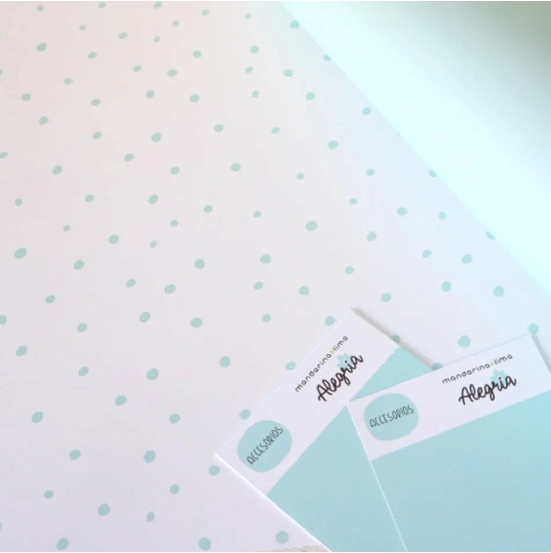 • Papel estampado com bolinhas verdes e papel liso verde claro