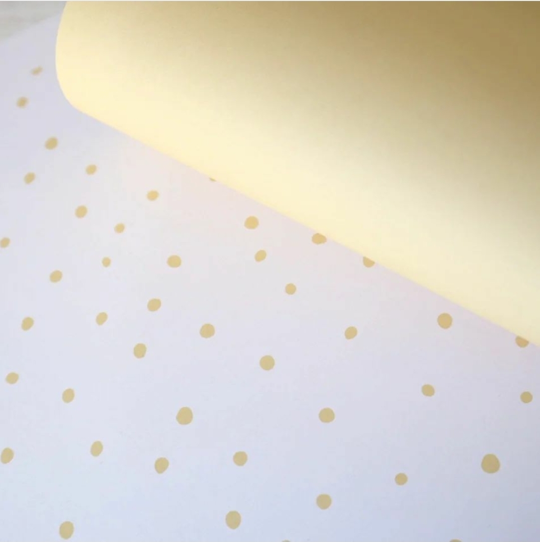 • Rolo de papel amarelo e branco com padrão de pontos amarelos