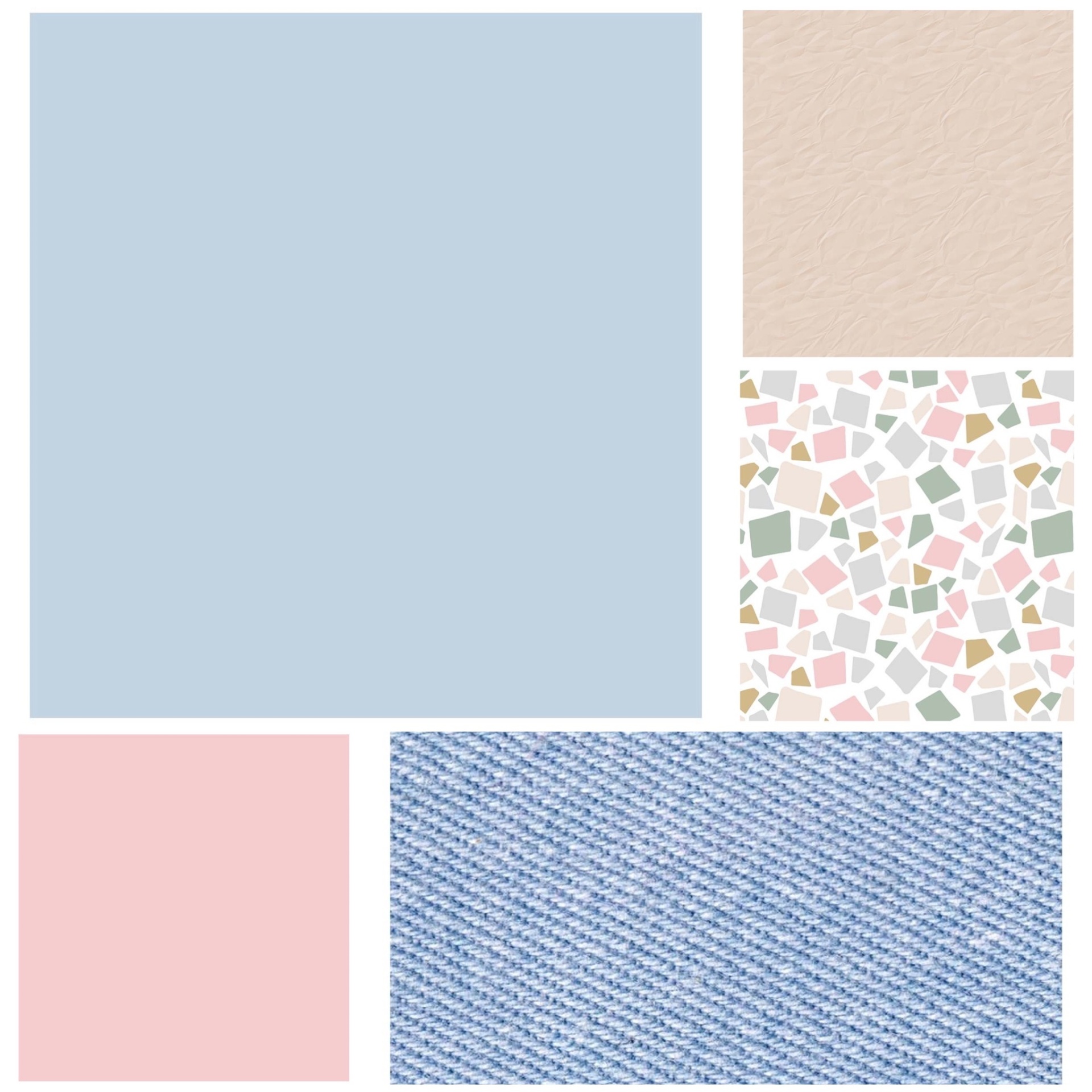 • Cinco quadrados com diferentes cores e texturas para amostras