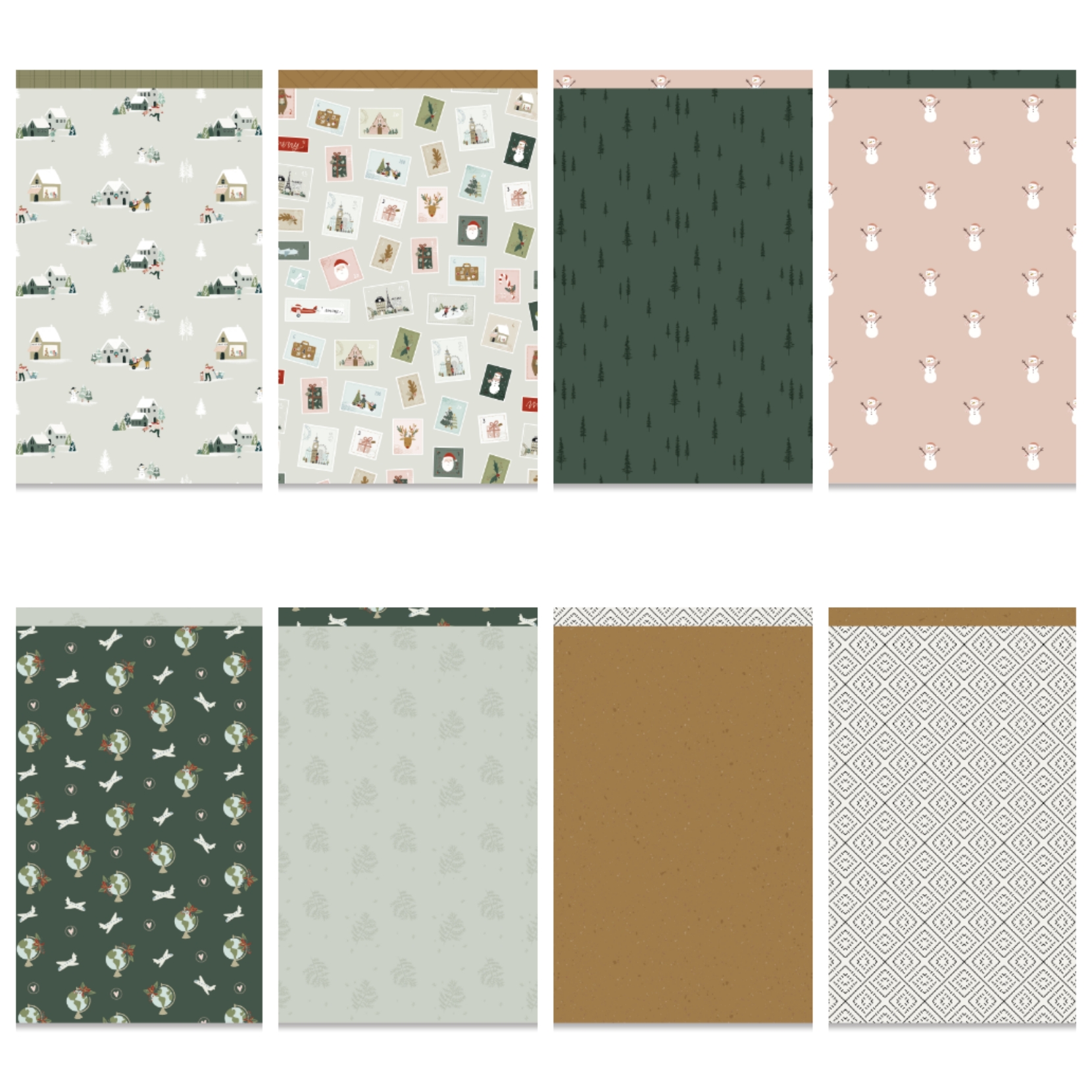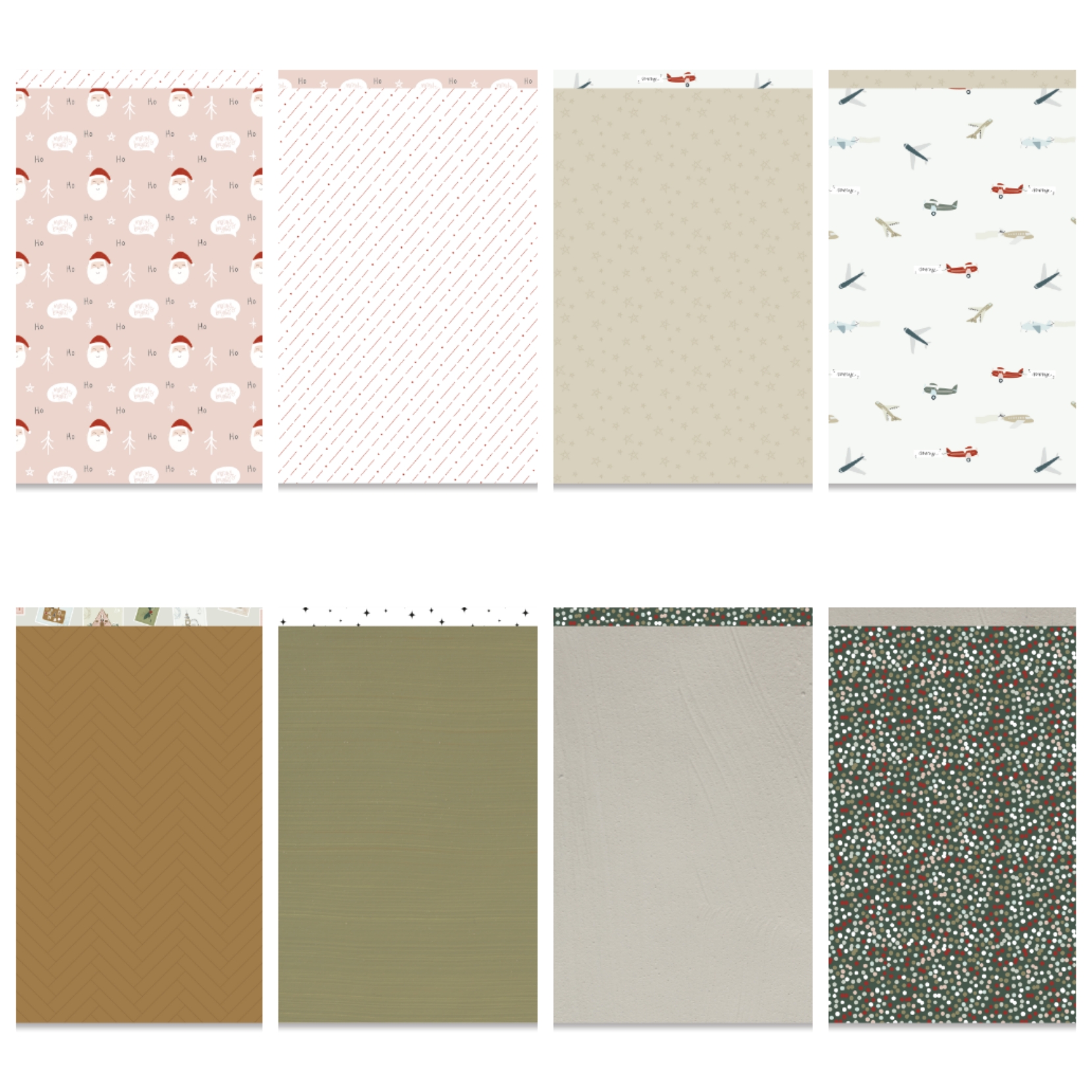 • Conjunto de papéis decorativos em folhas com vários padrões e cores Natal e terra.