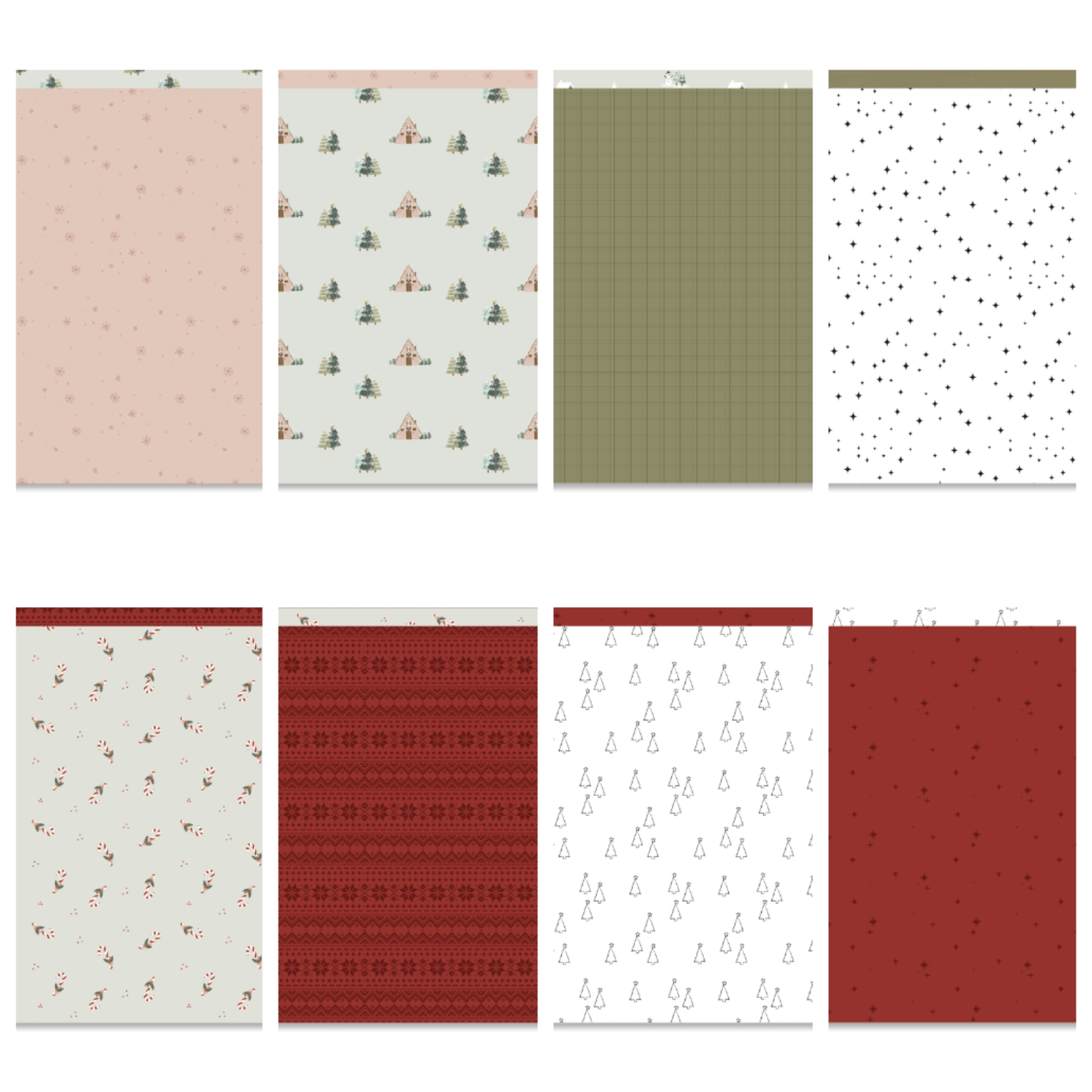 • Folhas de papel decorativo com padrões natalícios variados