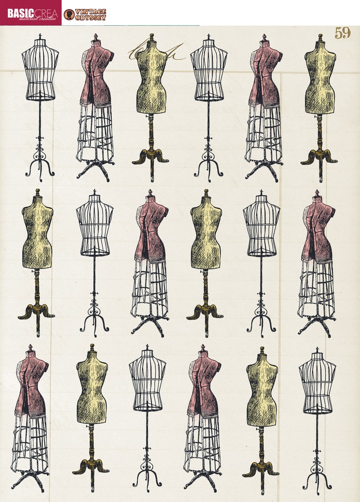 • Padrão repetido de manequins vintage para costura em várias cores e texturas