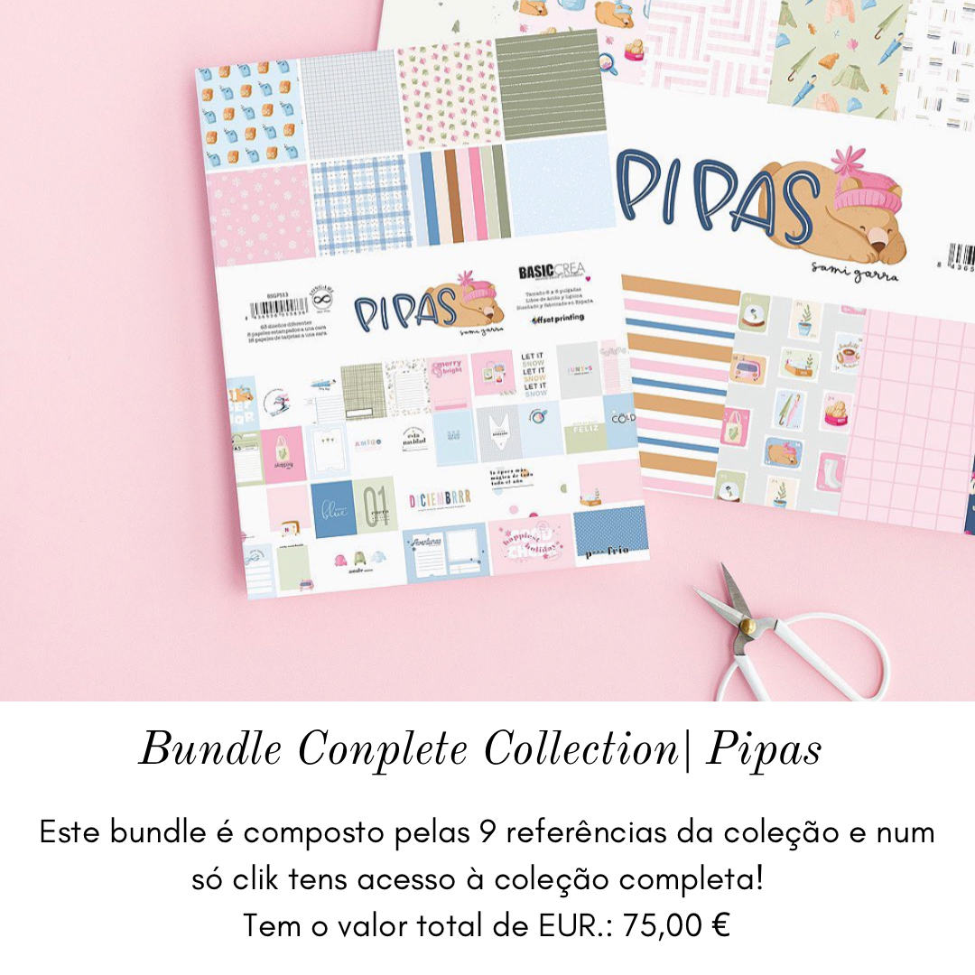 Bundle | Complete Collection | Pipas | Sami Garra 75,00 € Desconto de %. IVA incluído. Partilhar O produto encontra-se sem stock. Este bundle é composto por todas as 9 referências - Bloco 12x12 - 18 Papéis uma cara - Bloco 6x8 - 8 Papeis e 16 Folhas Cartóes - Acetato - Die cuts - Autocolantes Puffy - Rubbons Transferíveis - Cortantes (2 referências) - Carimbo Tem o valor total de EUR.: 75,00 €. Nota: A cor dos produtos poderá sofrer alterações alheias à N/ responsabilidade, devido à diferente calibragem de cada ecrã. Marca Sami Garra Tags BundlePipasSamiGarraBasicreaCompleteCollection Características