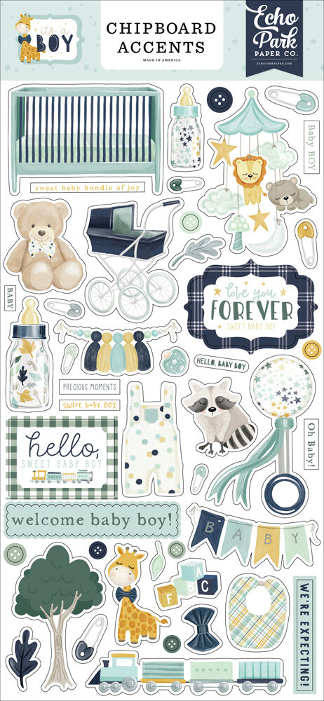 Os motivos coordenam com o resto da coleção It's a Boy da Echo Park.
