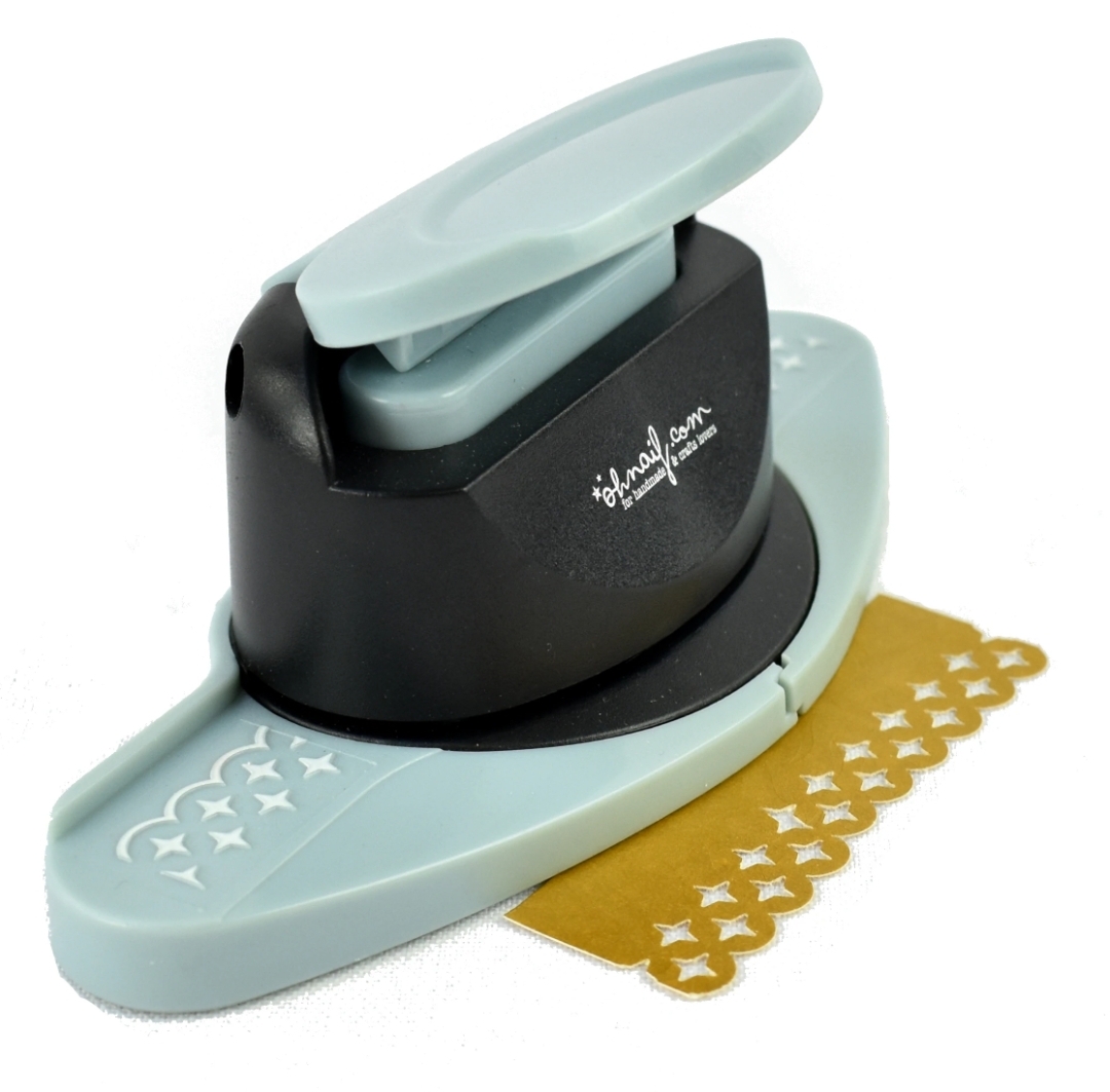 • perfurador de canto azul e preto com padrão decorativo de estrelas