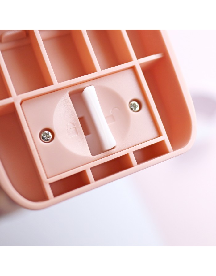 • Base de plástico cor de rosa com divisórias e interruptor branco central