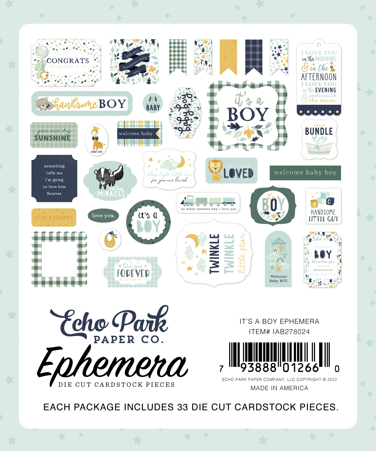 Die Cuts | It's a Boy | Echo Park 4,99 € Desconto de %. IVA incluído. Partilhar O produto encontra-se sem stock. Imagens recortadas perfeitas para decorares os teus projetos de scrapbooking. Nota: A cor dos produtos poderá sofrer alterações alheias à N/ responsabilidade, devido à diferente calibragem de cada ecrã. Marca Echo Park Paper Tags Die CutsScrapbookingechoparkitsaboyColeçãoBebéBaby Características