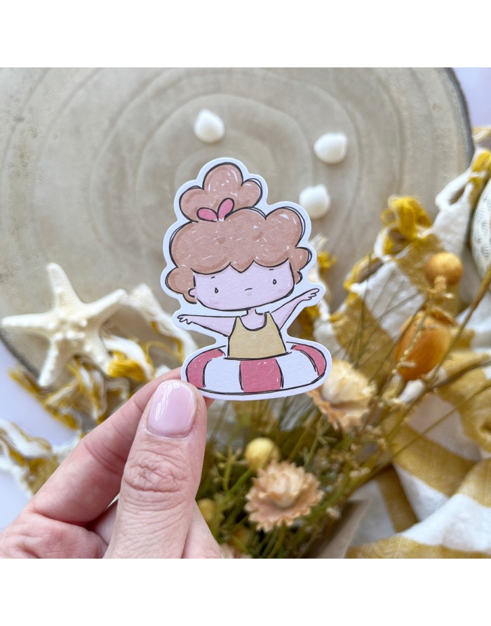 • Autocolante de menina com fato de banho e óculos de mergulho