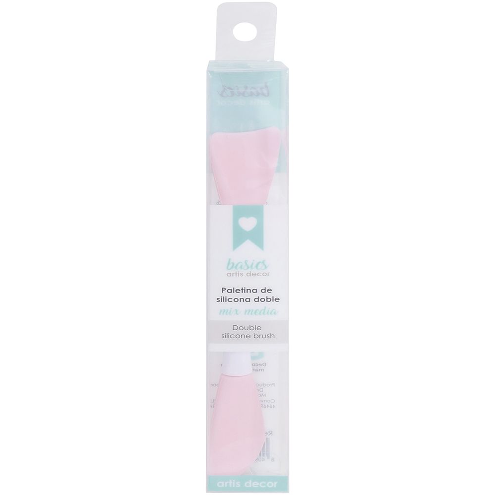 • Espátula dupla de silicone rosa com cabo branco e texto 'artis decor'