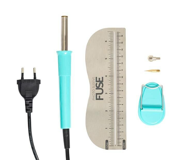 • Conjunto de ferramentas para soldadura com régua metálica e suporte azul
