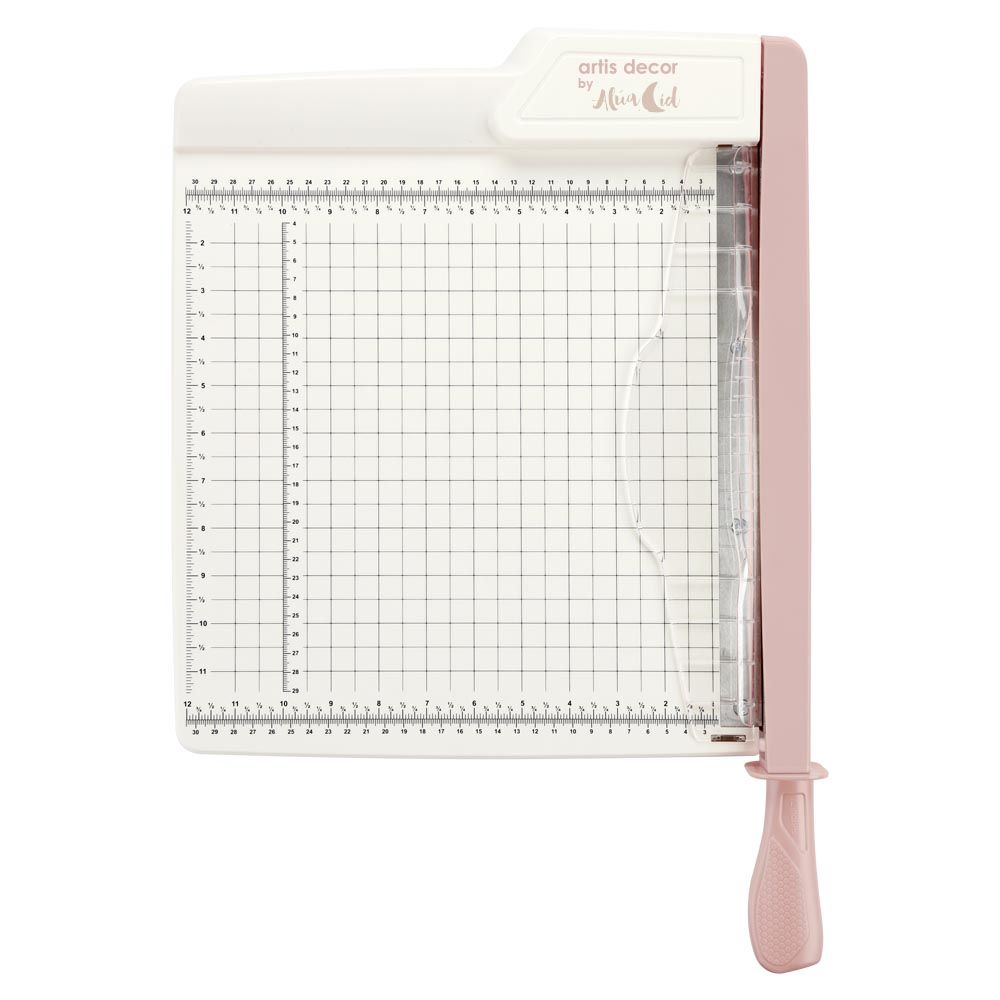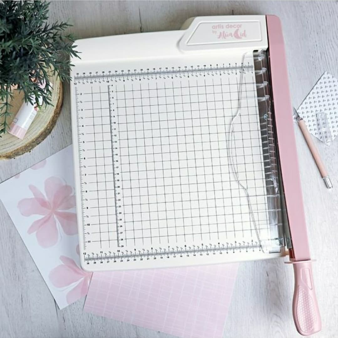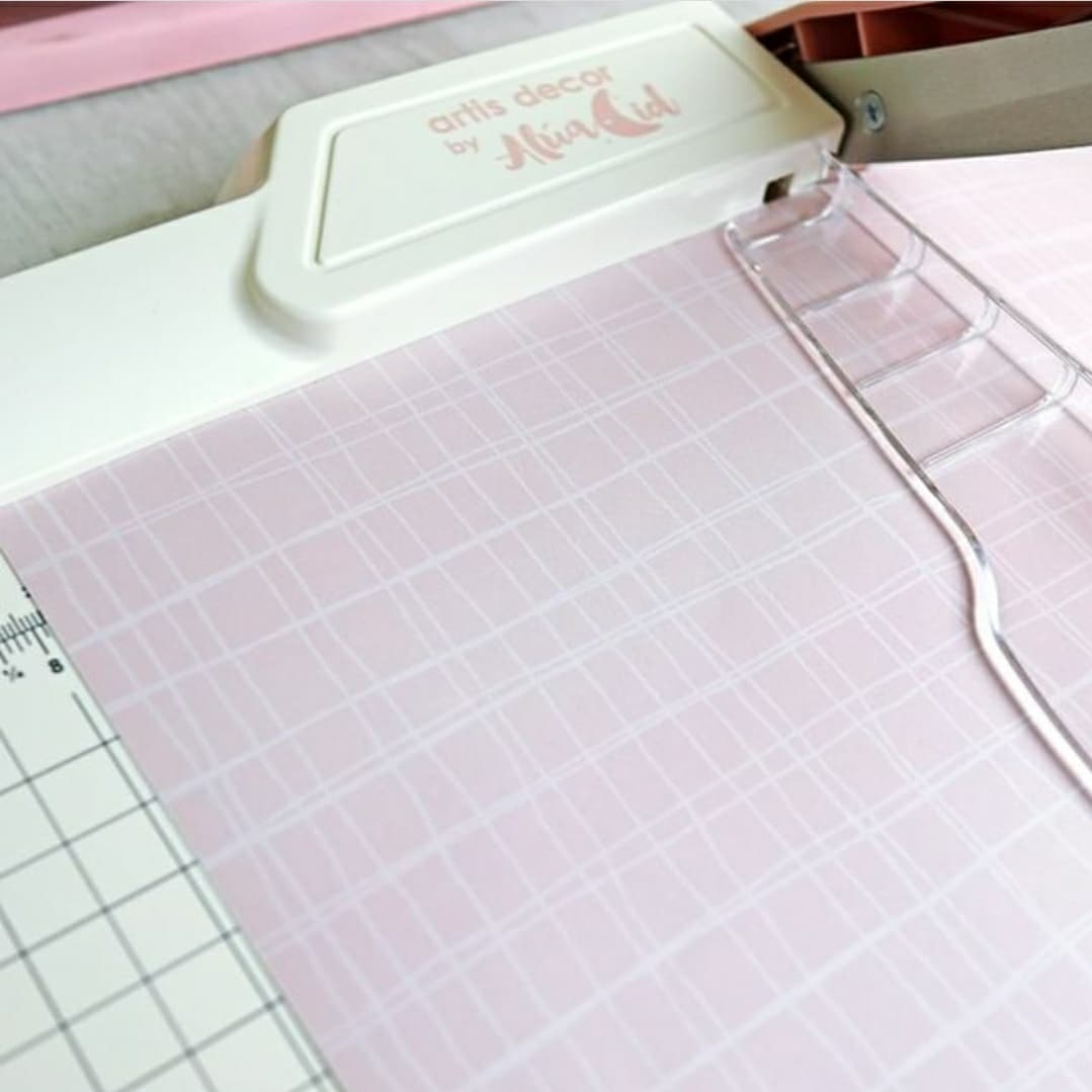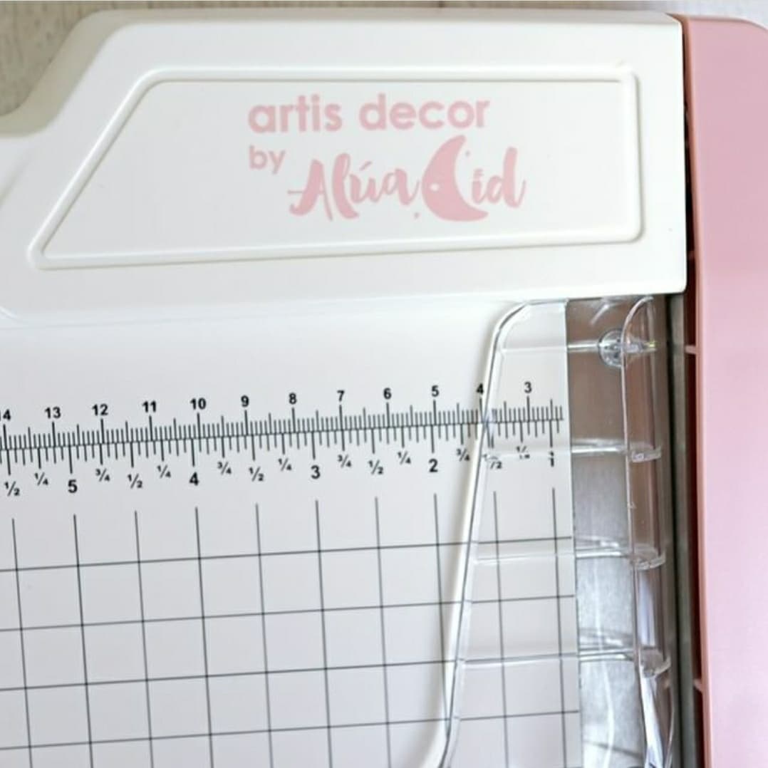 • Cortador de papel branco e rosa com régua e texto artis decor by Alúa Cid