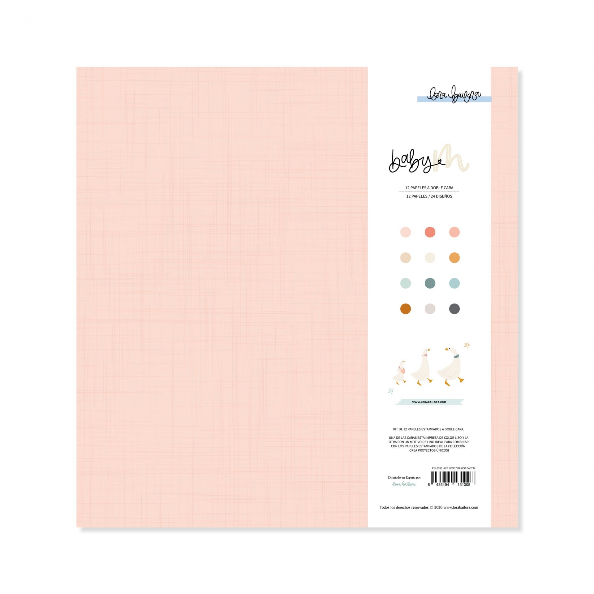 Quantidade de papéis por kit: 12 papéis estampados a dupla face com 24 desenhos distintos. Uma face está impressa com cor lisa e a outra estampada com desenhos da coleção.