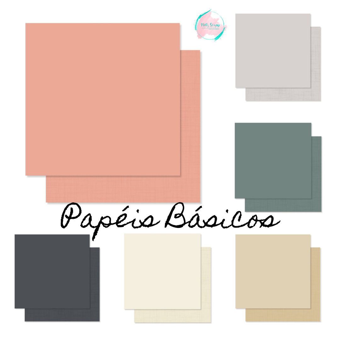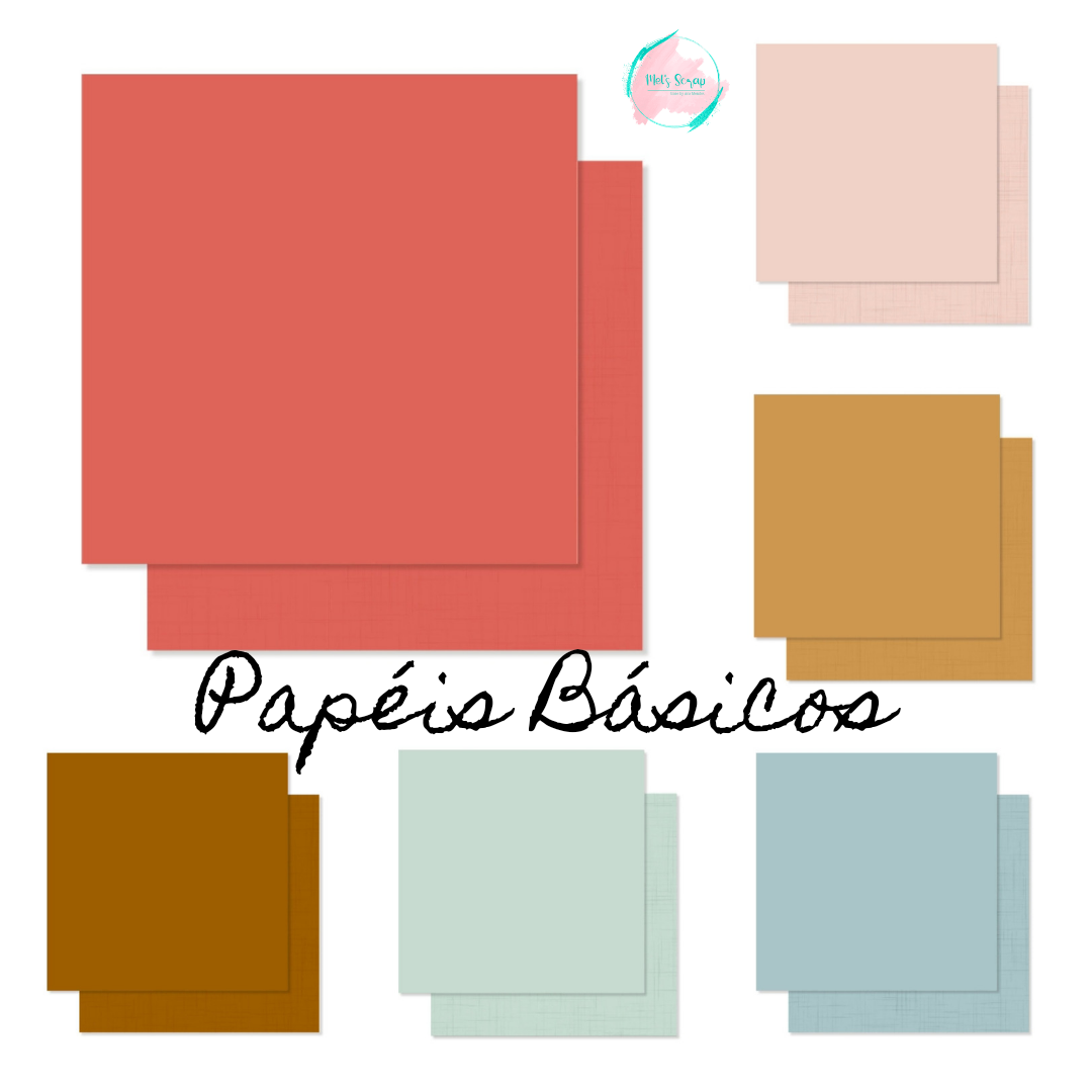 • Conjunto de papéis quadrados coloridos com texto 'Papéis Básicos'