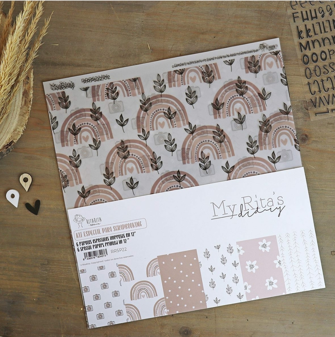 O kit de papéis especiais - Rita's Diary 2022 - contém 6 papéis para scrapbooking com diferentes características, para te ajudar a inovar no teu trabalho.