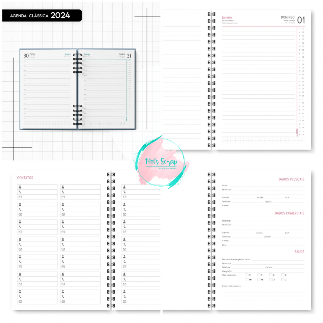 Miolo Agenda | 2024 8,99 € Desconto de %. IVA incluído. Partilhar Comprar Contactar O miolo da Agenda 2024 é ideal para quem gosta de personalizar a sua própria agenda! Tamanho A5 (148,5 x 210 mm) Dados pessoais/comerciais/saúde Calendário 2024 com indicação de feriados Calendário 2025 com indicação de feriados Contatos – 3 páginas Senhas – 1 página Planeamento Anual 1 dia por página com horário 7h às 19h Impressão Preto Anotações Nota: Não incluí capa nem contracapa Marca Mel's Scrap Tags agendaMioloPersonalizarPlanner2024