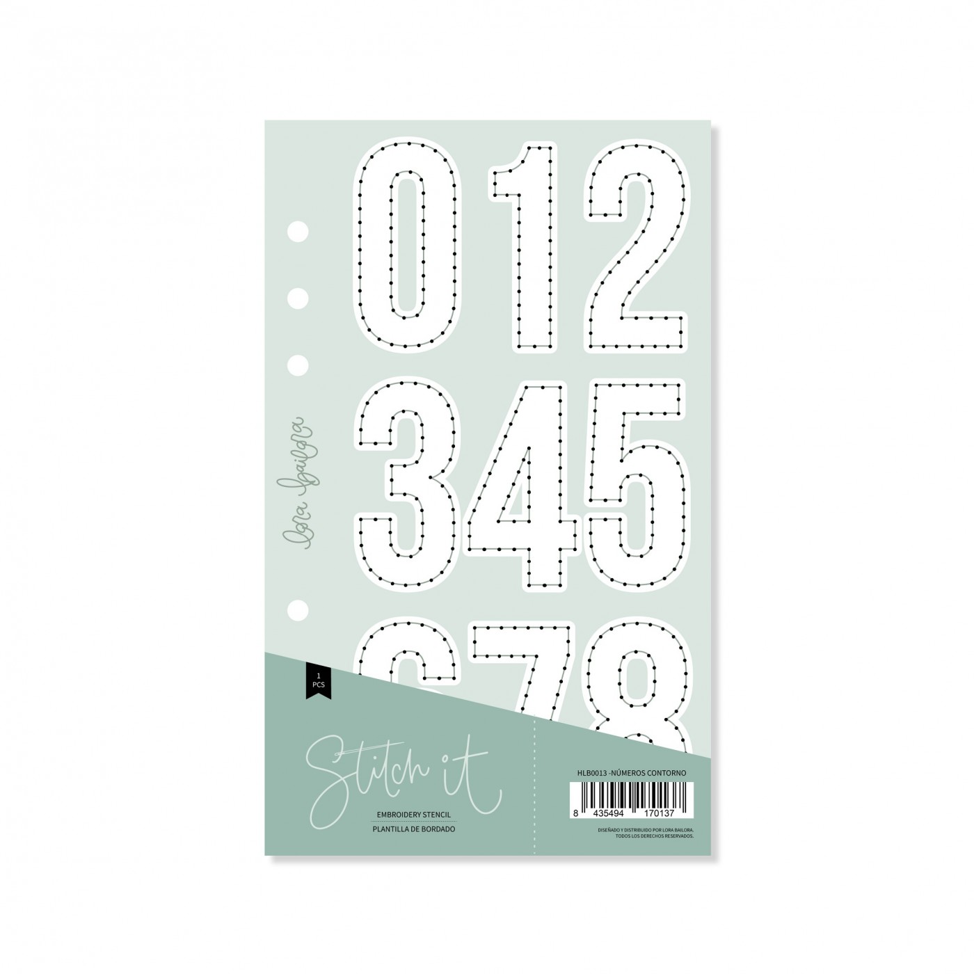 • Folha stencil para bordado com números de 0 a 9 em papel plastificado cinza claro