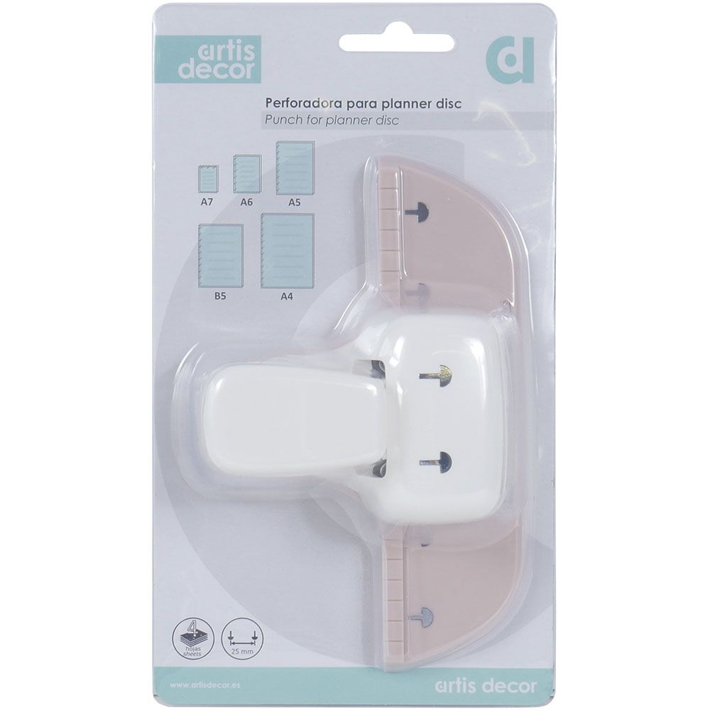 • Perfuradora para planner disc Artis Decor branca e bege em embalagem blister
