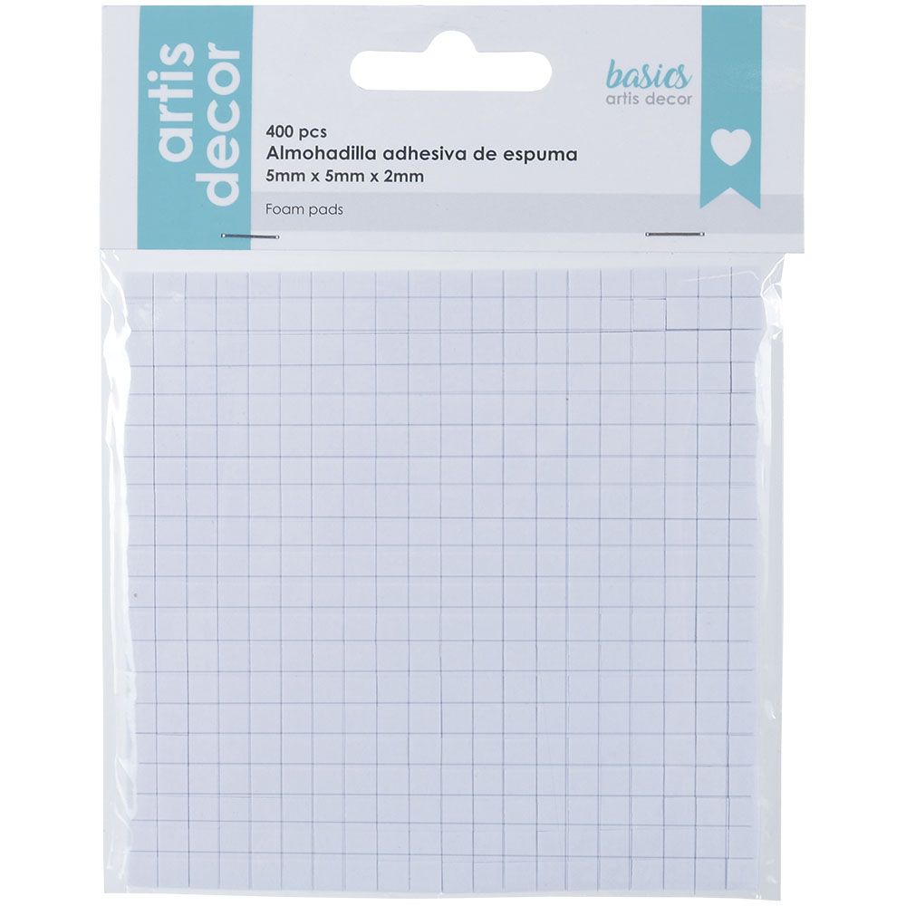 Quadrados Foam | 5x5x2 0,65 € Desconto de %. IVA incluído. Partilhar Comprar Contactar Almofadas de foam adesiva dupla face. Medida: 5x5mm e 2mm de espessura. Folha de 400 unidades. Marca Artis Decor Tags FoamAdesivoartisdecor