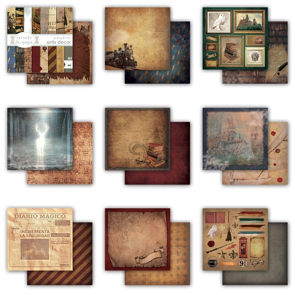 • Papel decorativo variado para scrapbook com temas de magia e vintage.