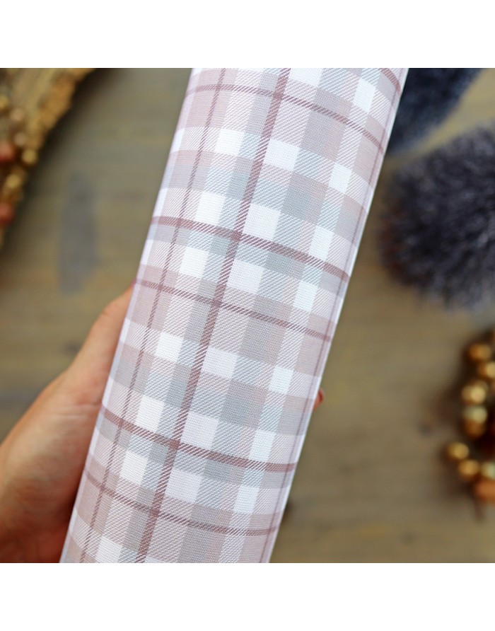 • Rolo de papel de embrulho aos quadrados em branco, cinza e castanho