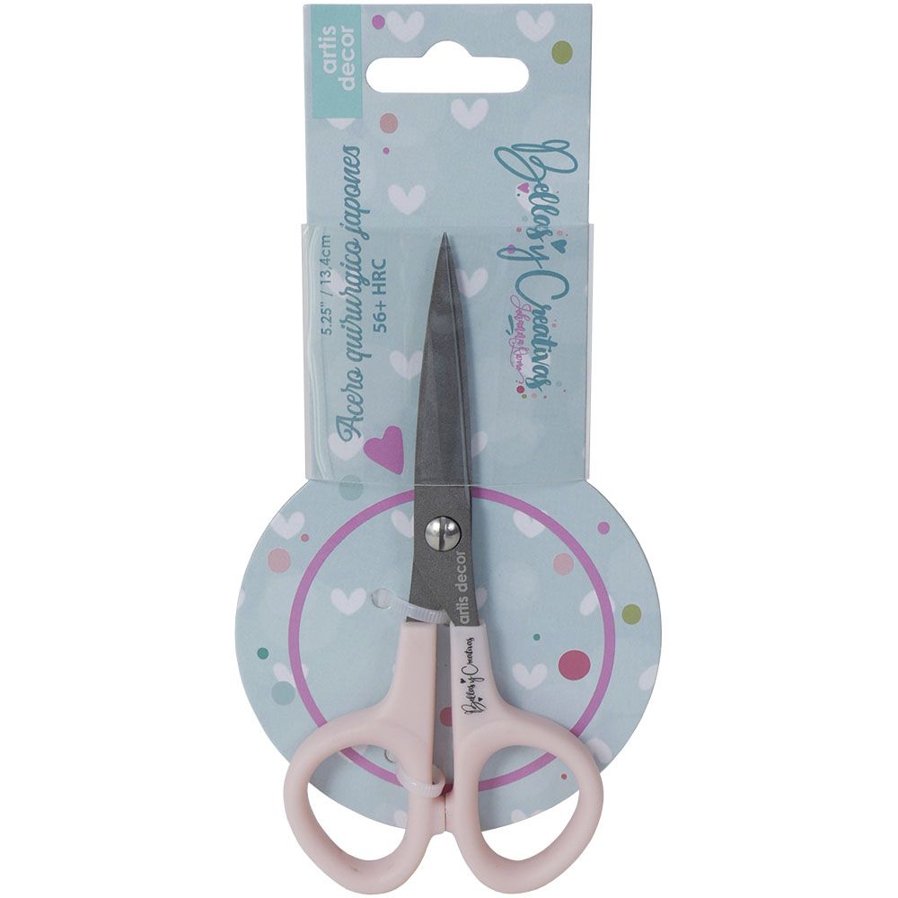 • Tesoura rosa claro em embalagem azul com corações e texto