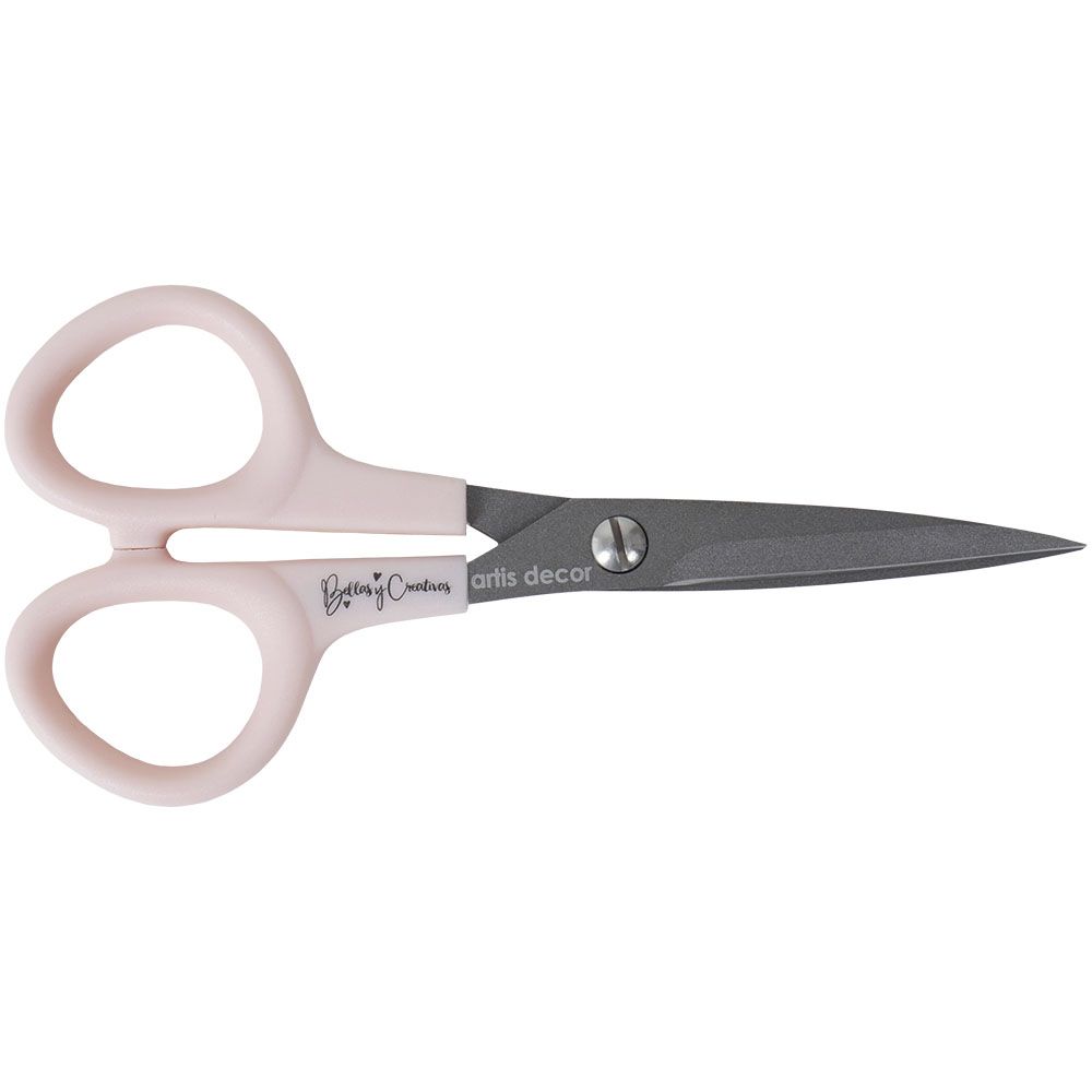 Tesoura de 5'' (12,7cm aprox.), com um toque suave e lâminas em aço temperado antiaderente, foi concebida para o máximo conforto, precisão e resistência.